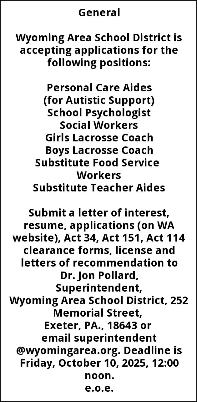 @wyomingarea.org. Deadline is Friday, October 10, 2025, 12:00 noon.