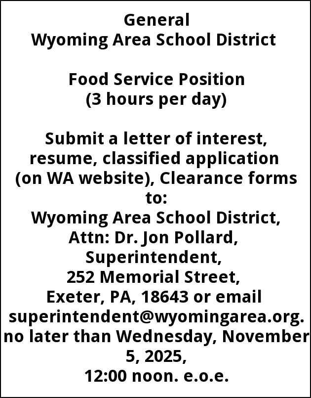 Wyoming Area School District Food Services Jobs from Citizens Voice